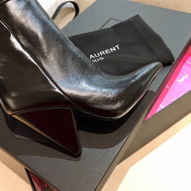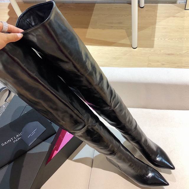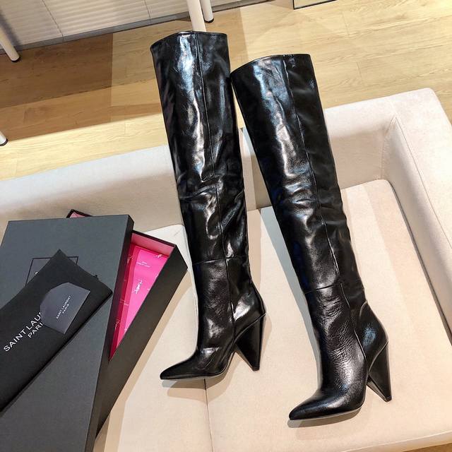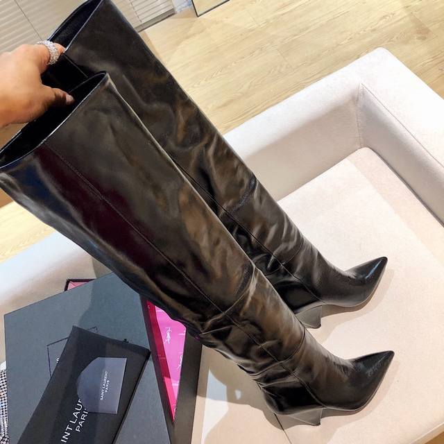 高级升级定制版! Saint Lauren Ysl圣罗兰 最新折皱尖头高跟高筒靴款,专柜最新异性跟超显眼 17Ss专柜推出最新超美新秋冬款女士时尚款,官网最新同步,性感粗跟短靴优雅的黑色气息更显出外在性感。材料:24寸鞋面进口亮油牛皮 、水晶羊皮内里 、意大利真皮大底。
