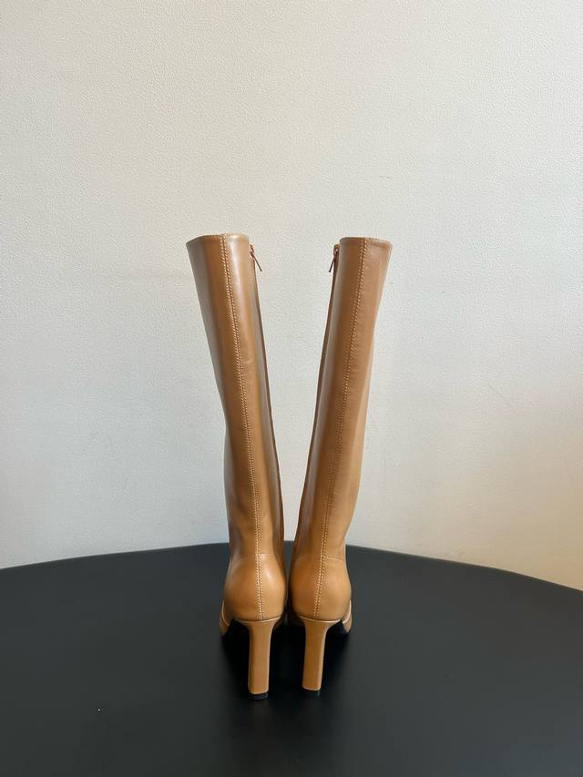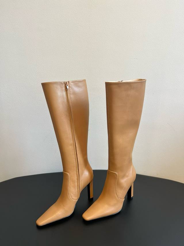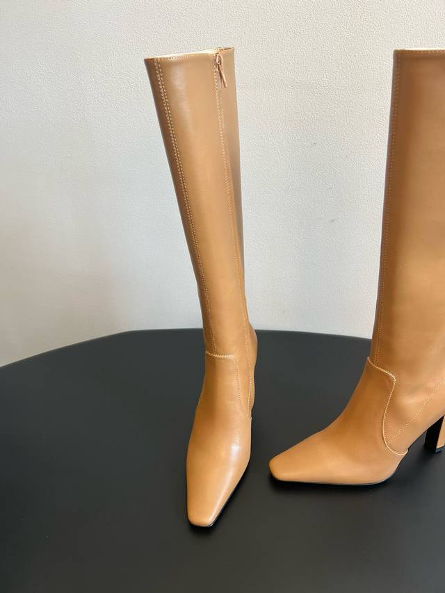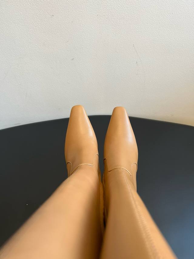 整个鞋非常的简约大气 小方头更加的精致时髦可以看到我们靴子侧面是按照人体腿型设计出来的弧度