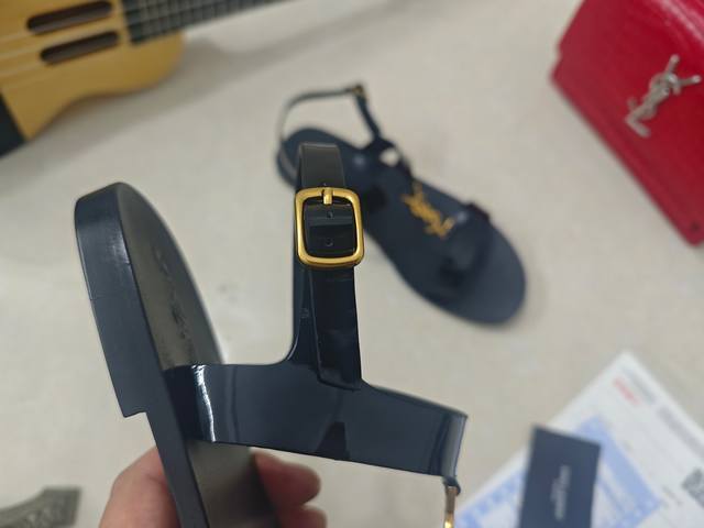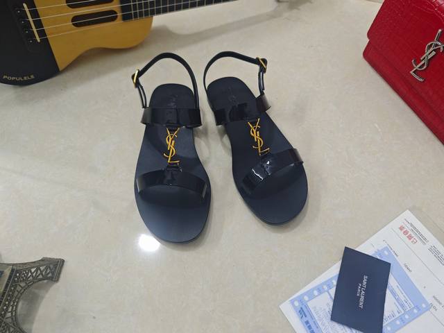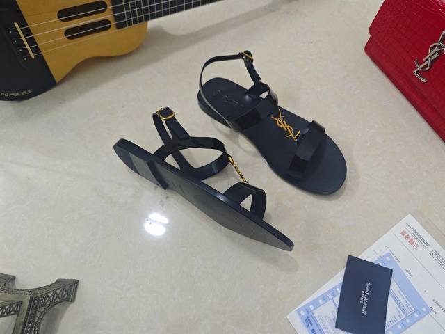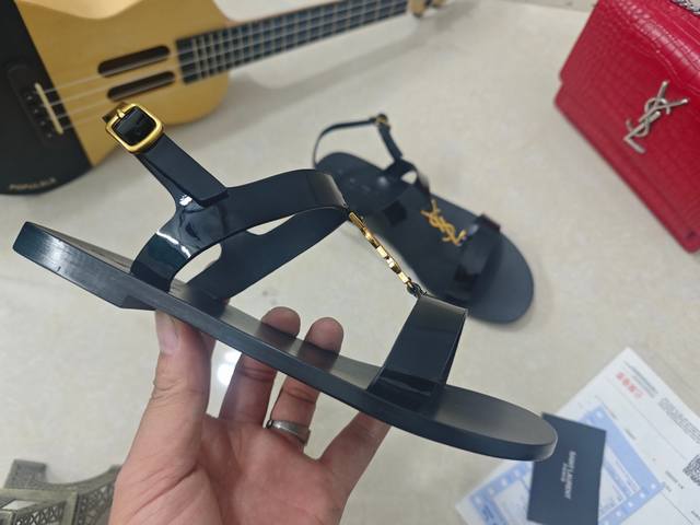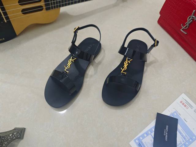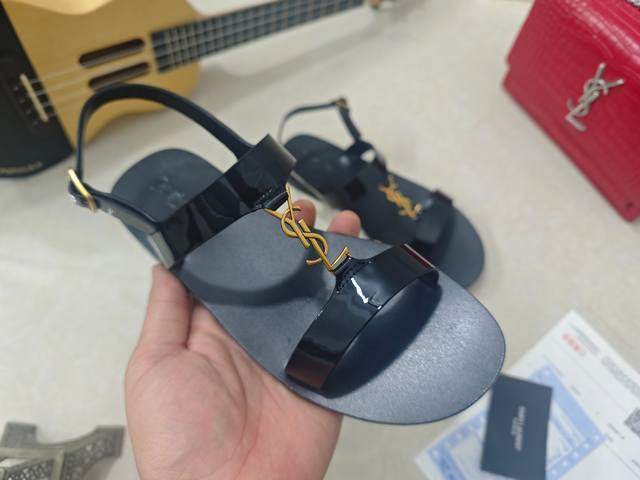 Saint Laurent 圣罗兰、平板凉鞋2025早春专柜同步最新款、Ysl、Logo字母扣装饰
