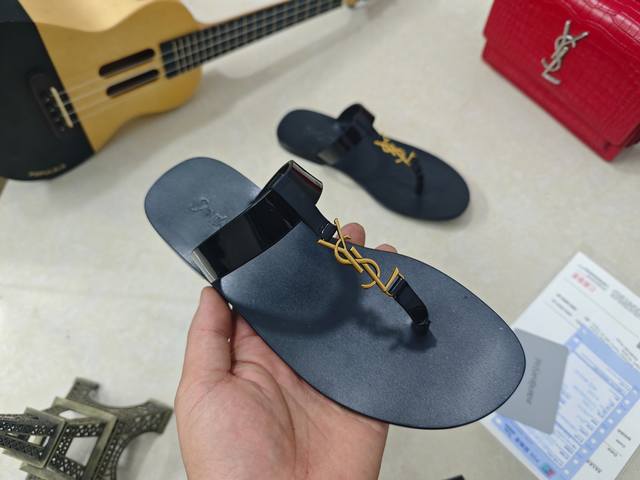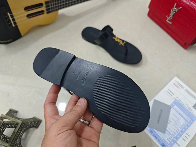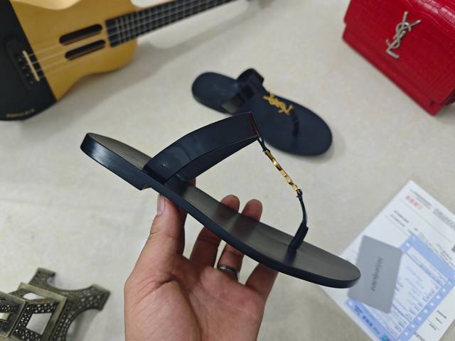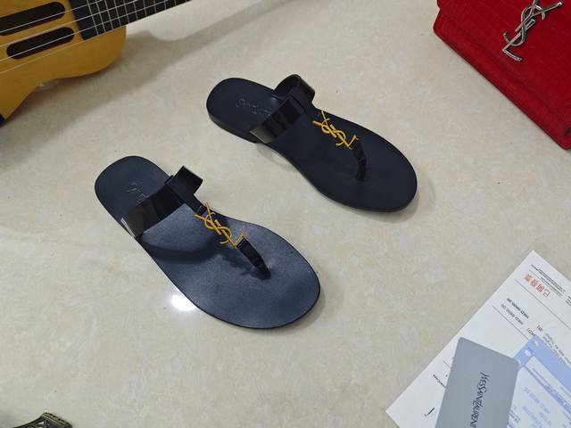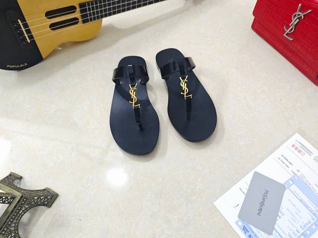 Saint Laurent 圣罗兰、平板夹脚凉鞋2025早春专柜同步最新款、Ysl、Logo字母扣装饰 经典上乘美艳力作 专柜最火春夏系列 兼备气质 时尚 经典