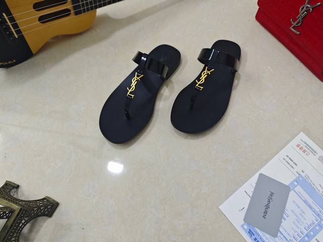 Saint Laurent 圣罗兰、平板夹脚凉鞋2025早春专柜同步最新款、Ysl、Logo字母扣装饰