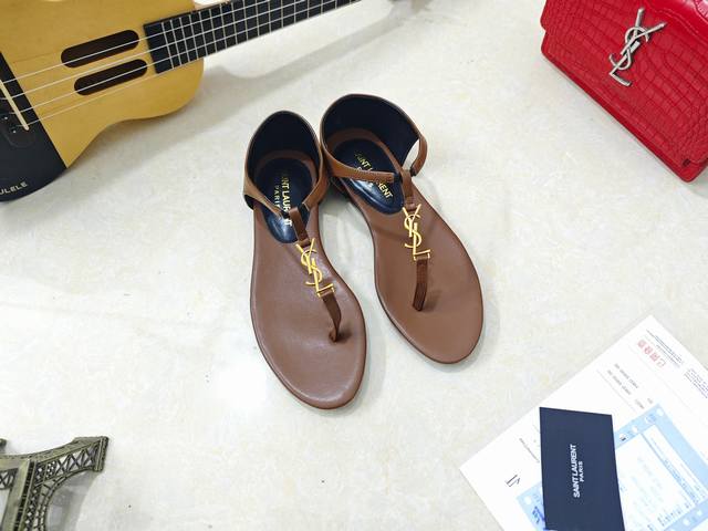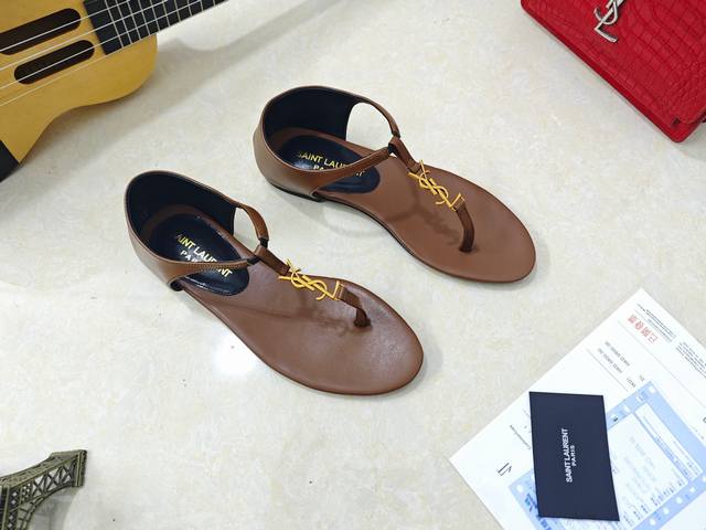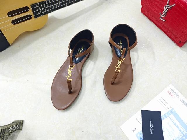 Saint Laurent 圣罗兰、平板夹脚凉鞋2025早春专柜同步最新款、Ysl、Logo字母钻扣装饰