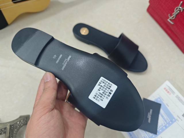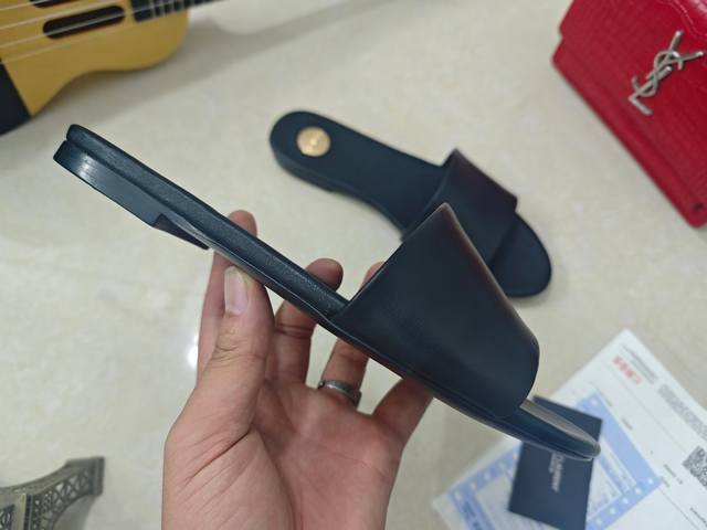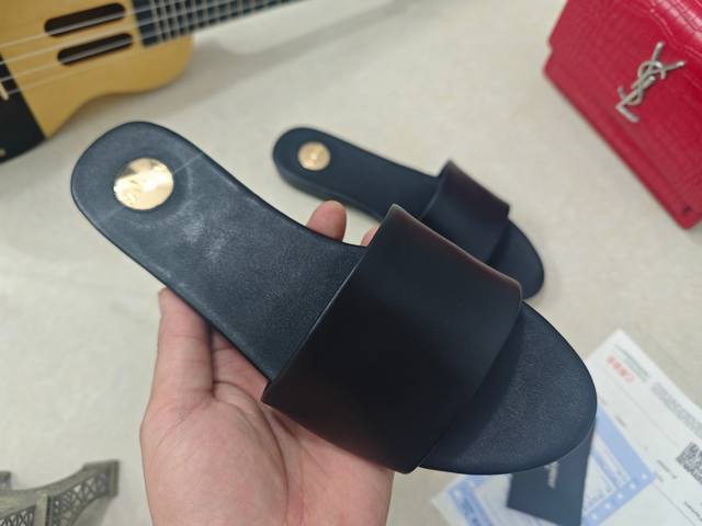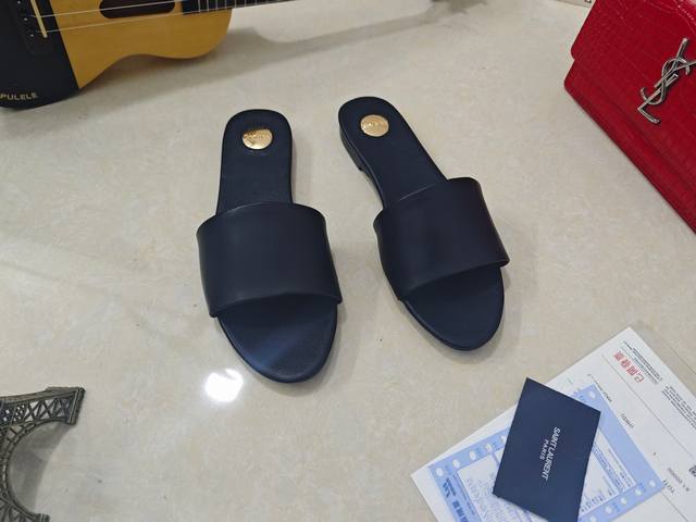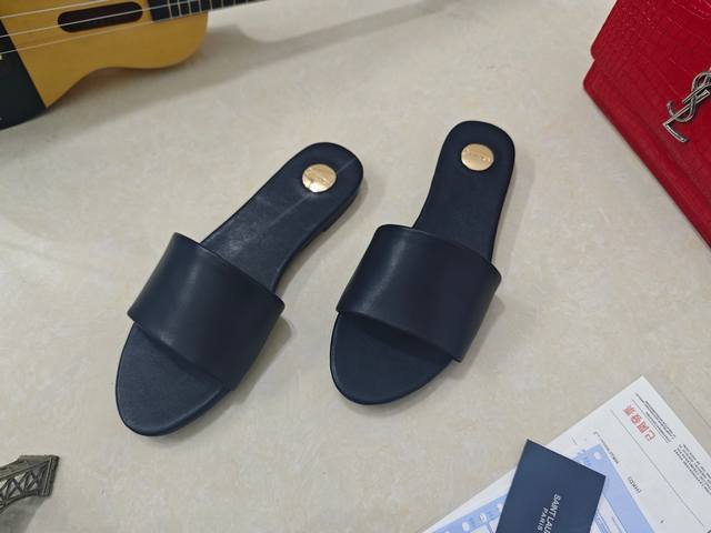 Saint Laurent 圣罗兰、平板拖脚凉鞋2025早春专柜同步最新款、Ysl、Logo字母钻扣装饰