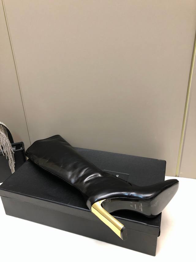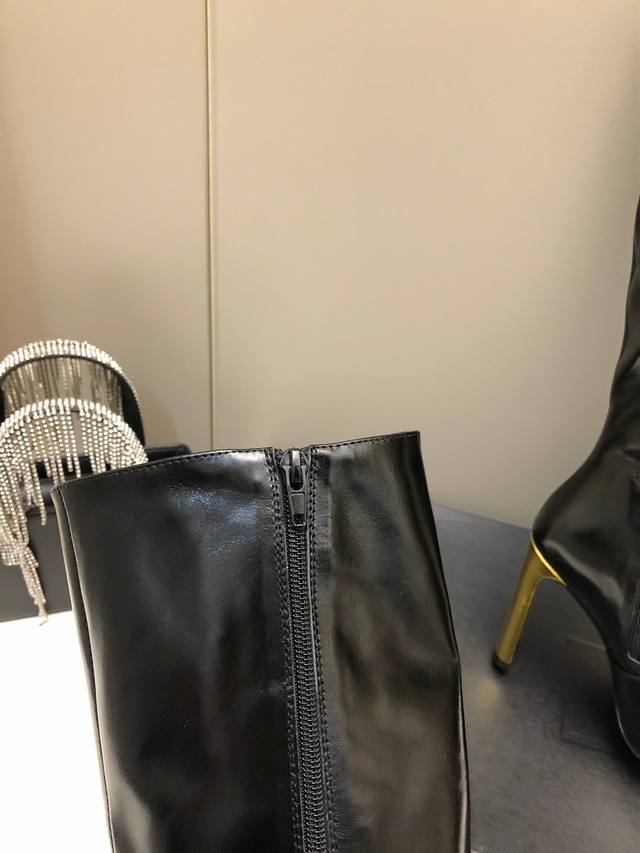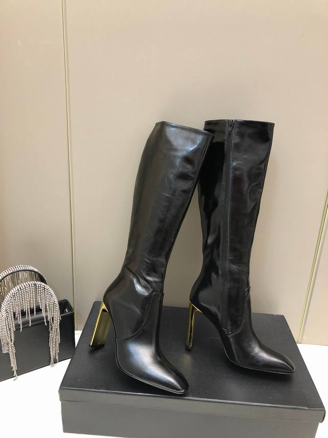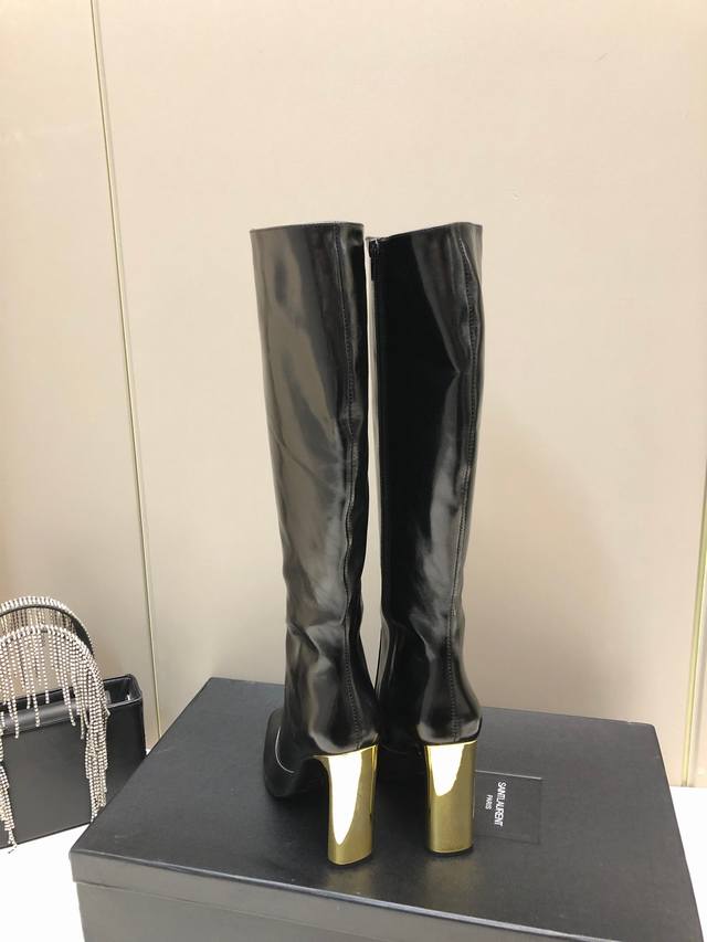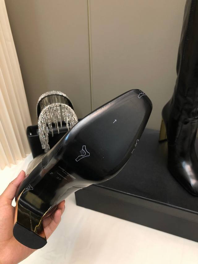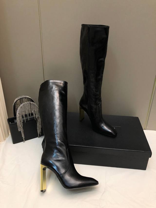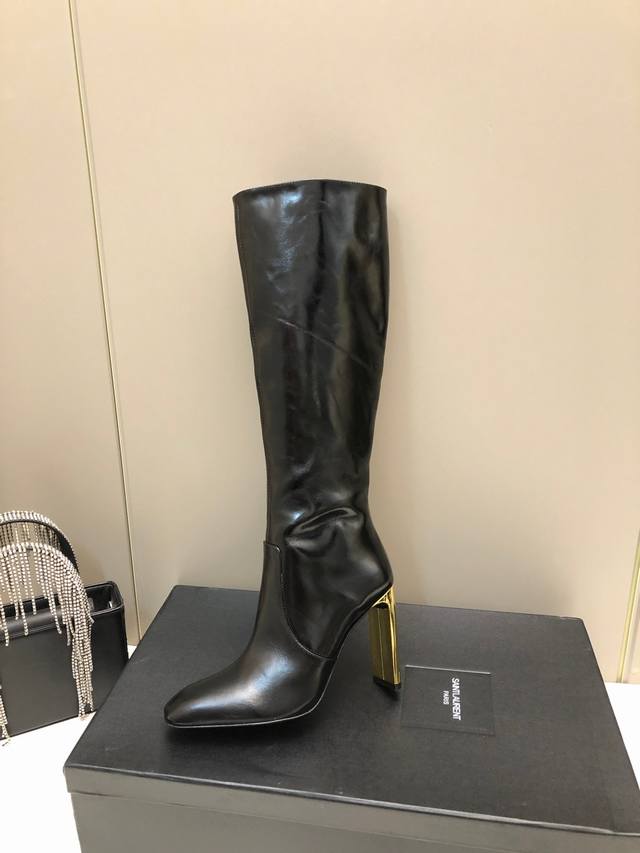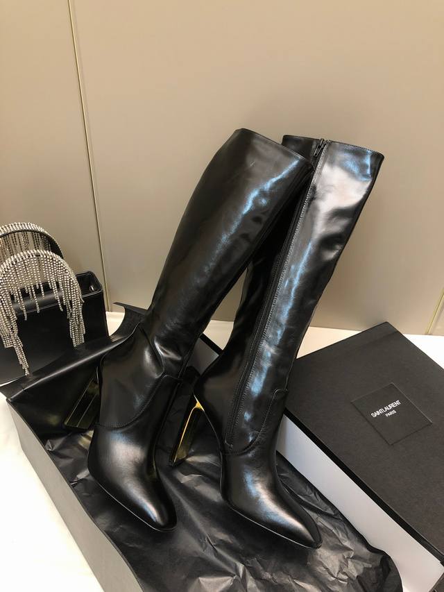 Saint Laurent 圣罗兰 专柜秋冬爆款长靴,最新款侧拉链简约时尚长靴靴 简单大气 上脚显瘦100% 面料:进口牛油皮 内里:水晶羊皮里 大底:A级意大