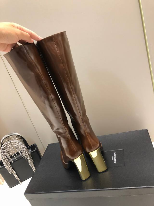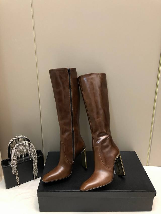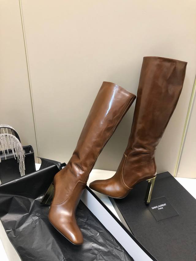 Saint Laurent 圣罗兰 专柜秋冬爆款长靴,最新款侧拉链简约时尚长靴靴 简单大气 上脚显瘦100% 面料:进口牛油皮 内里:水晶羊皮里 大底:A级意大