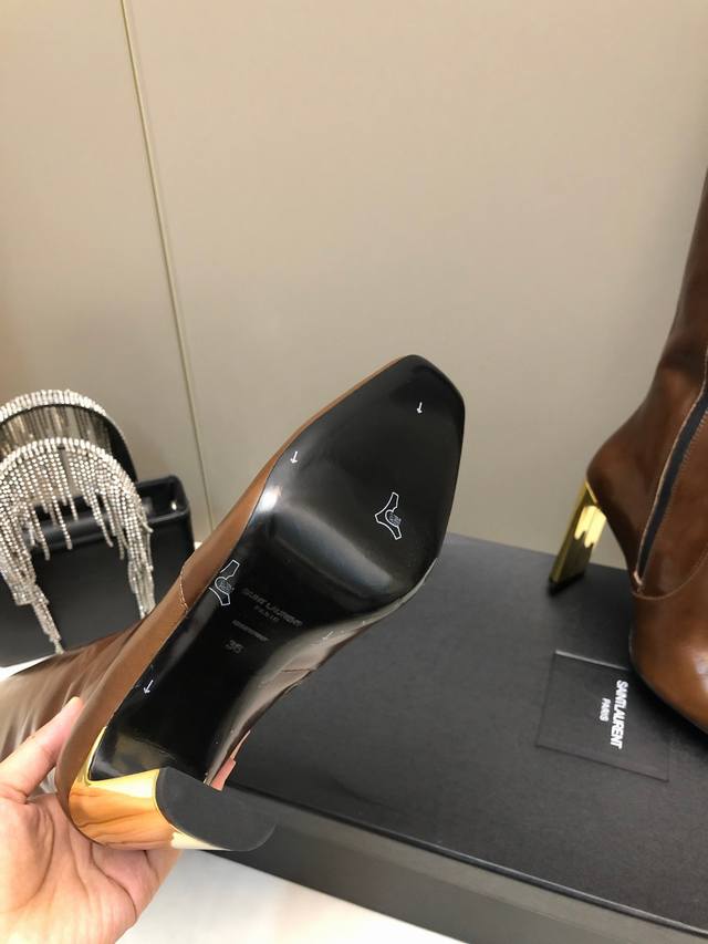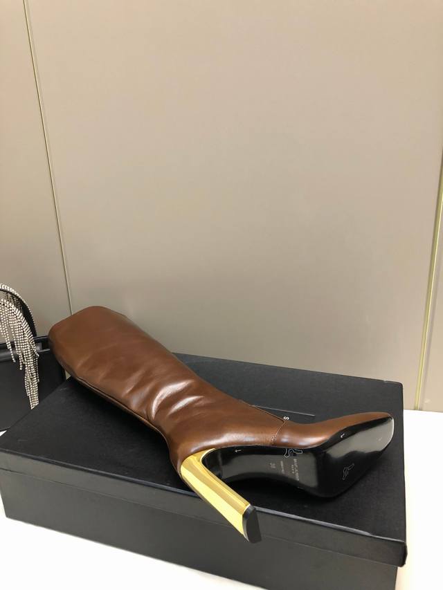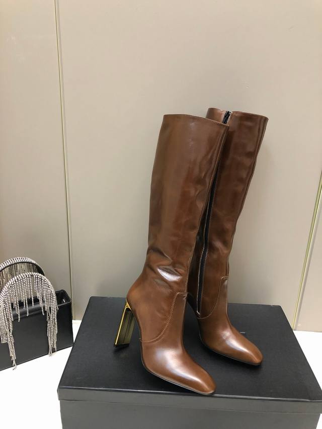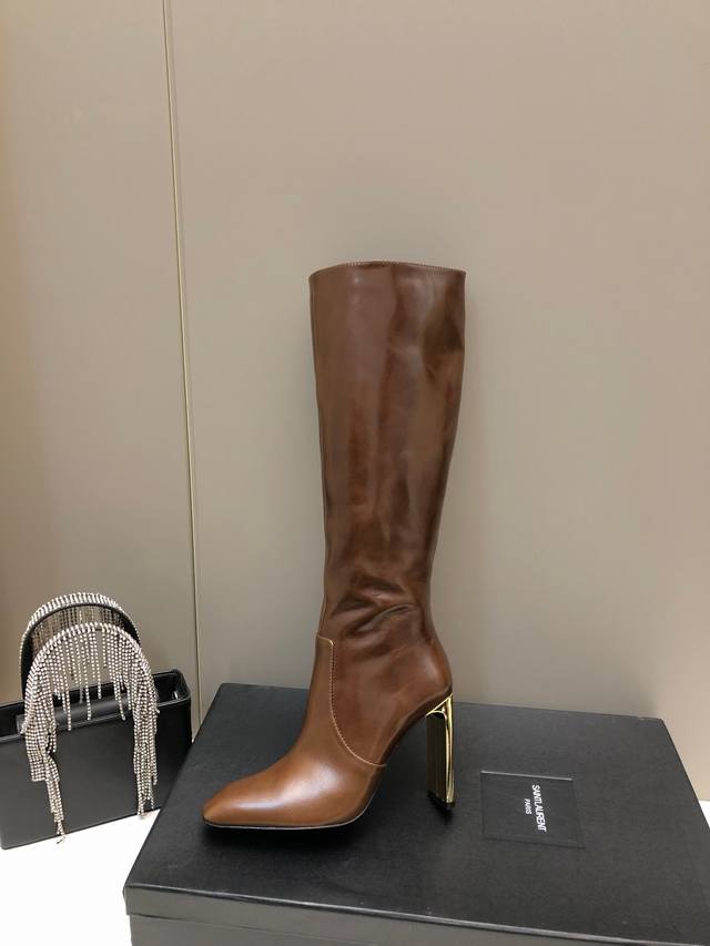 / Saint Laurent 圣罗兰 专柜秋冬爆款长靴,最新款侧拉链简约时尚长靴靴 简单大气 上脚显瘦100% 面料:进口牛油皮 内里:水晶羊皮里 大底:A级意大