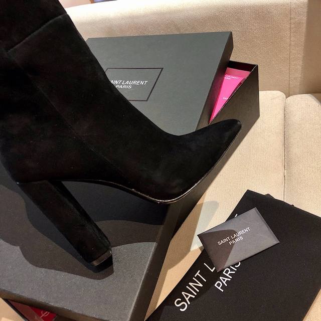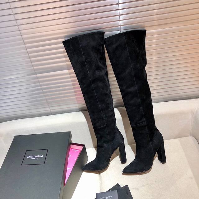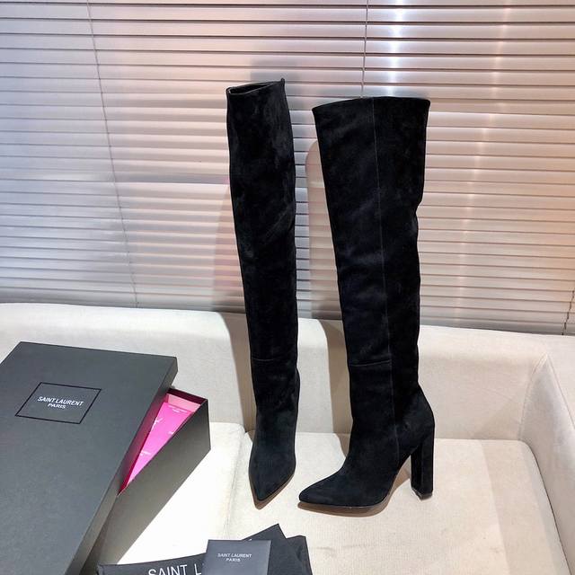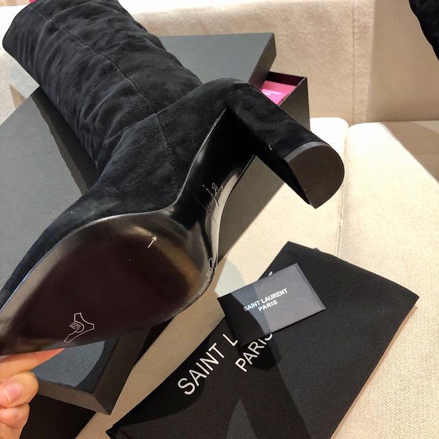 / Saint Laurent 圣罗兰 Ysl全羊京高跟长筒靴。上脚自然褶皱很好的修饰脚型,搭配高跟秒变大长腿。 鞋面:进口羊京皮 非市面弹力绒 内里 垫脚:进口羊