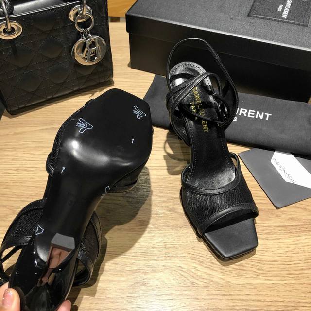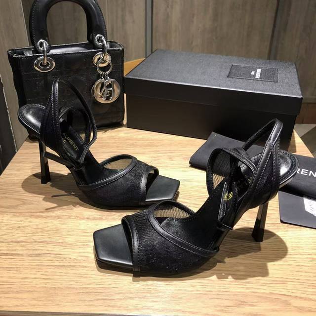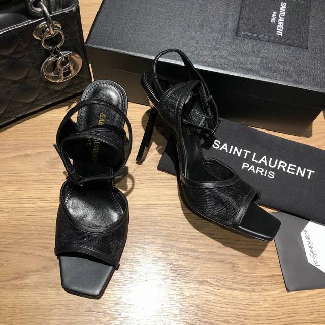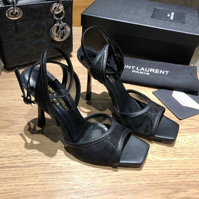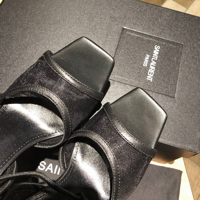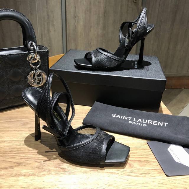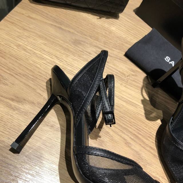 Saint Laurent 圣罗兰 Ysl网纱带高跟凉鞋