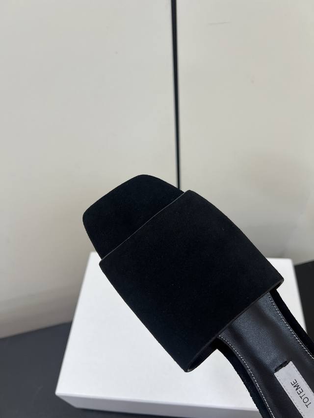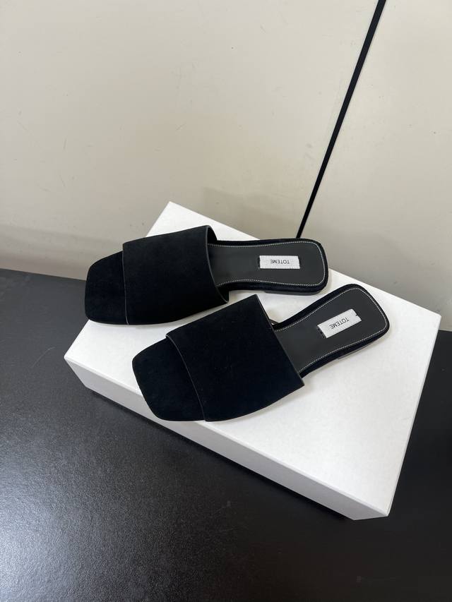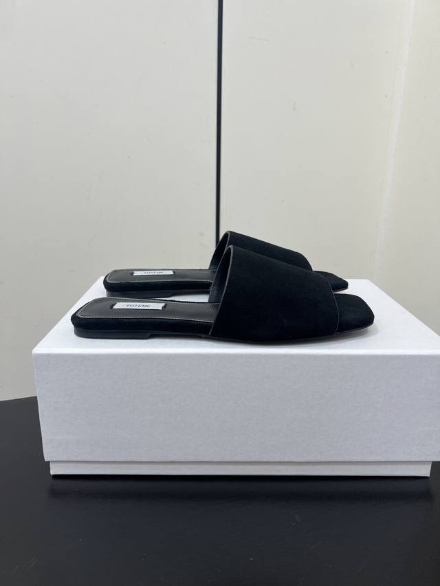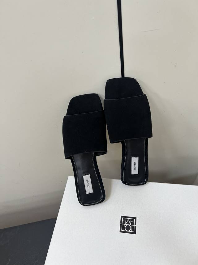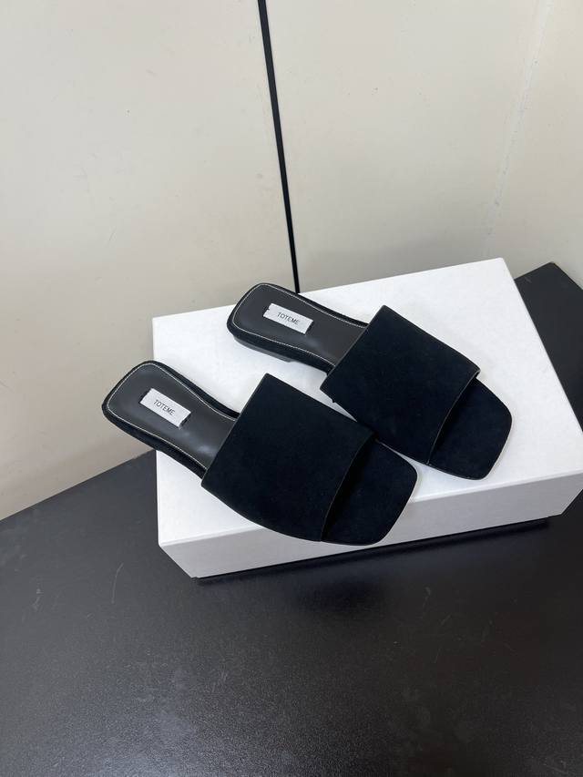 Toteme 2025 | 小众新品方头拖鞋 极简百搭 比较舒服的麂皮绒 软乎乎 颜色搭配也超高级 夏日出门理想穿搭 慵懒随性 气质优雅 Size:35-41