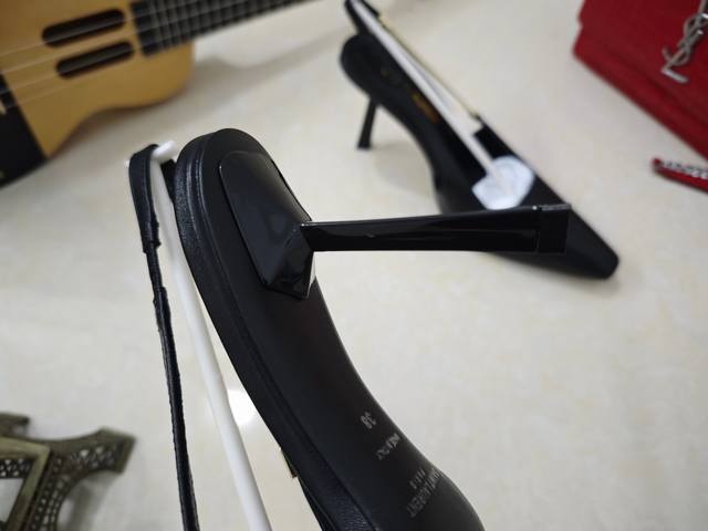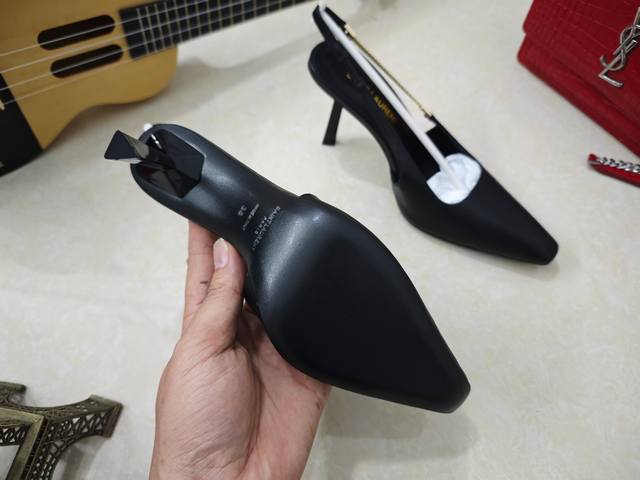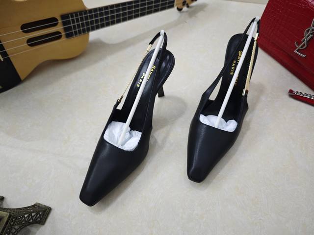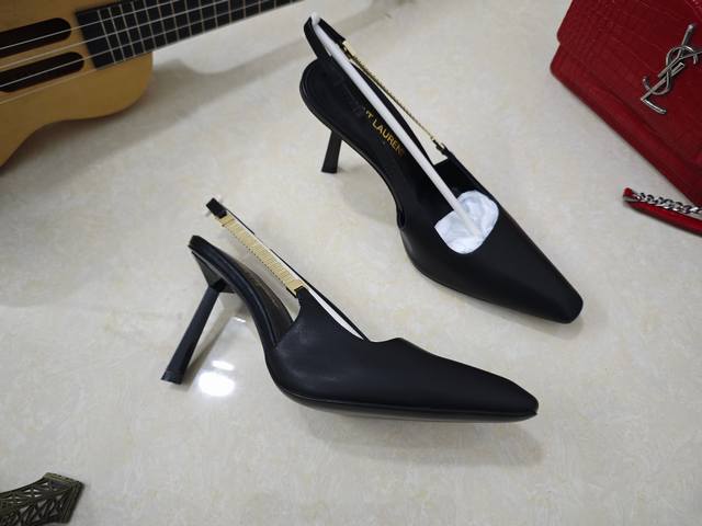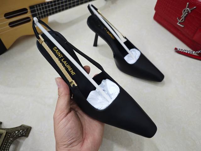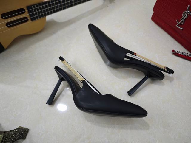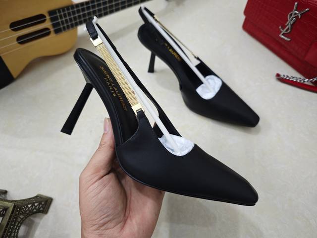 米 Saint Laurent 圣罗兰、细跟电镀跟后空单鞋早春专柜同步最新款、Ysl、Logo字母金色扣装饰 经典上乘美艳力作 专柜最火春夏系列...