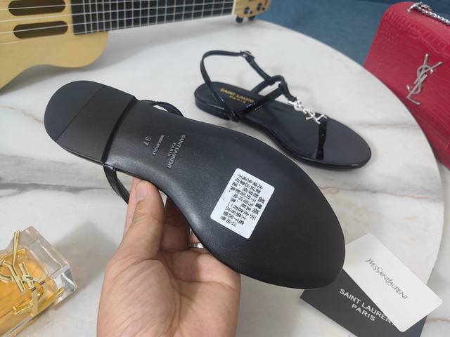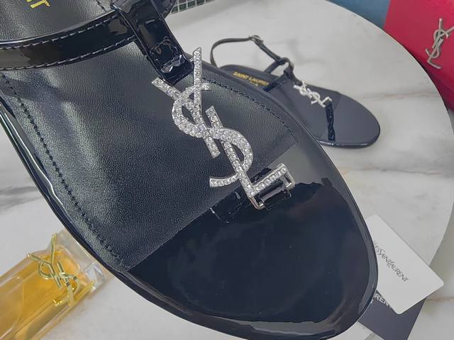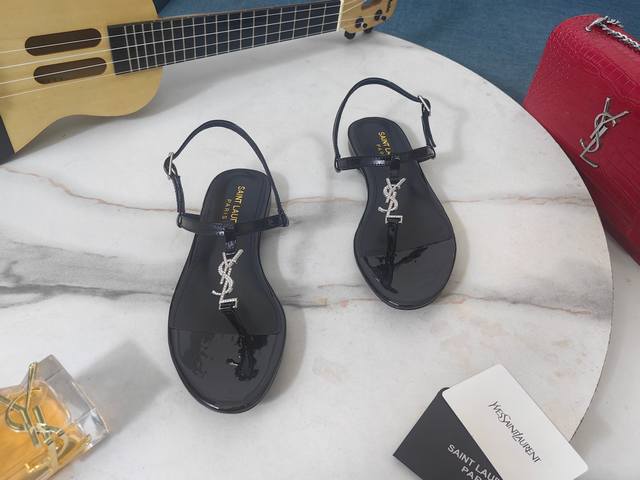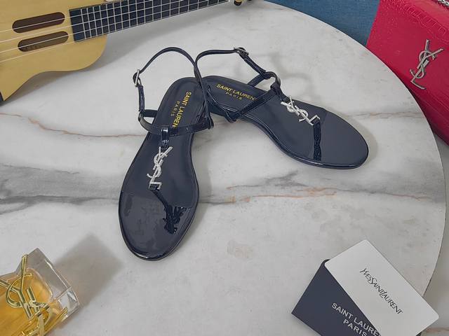 Saint Laurent 圣罗兰、平板夹脚凉鞋早春专柜同步最新款、Ysl、Logo字母钻扣装饰